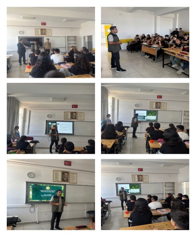 Afşin Orman İşletme Şefliği ekibi, Orman Genel Müdürlüğü’nün çalışmaları doğrultusunda okulumuzu ziyaret ederek öğrencilerimize ormanların korunması, orman yangınlarının önlenmesi ve çevre bilincinin geliştirilmesi konularında kapsamlı ve bilgilendirici sunumlar yaptılar.